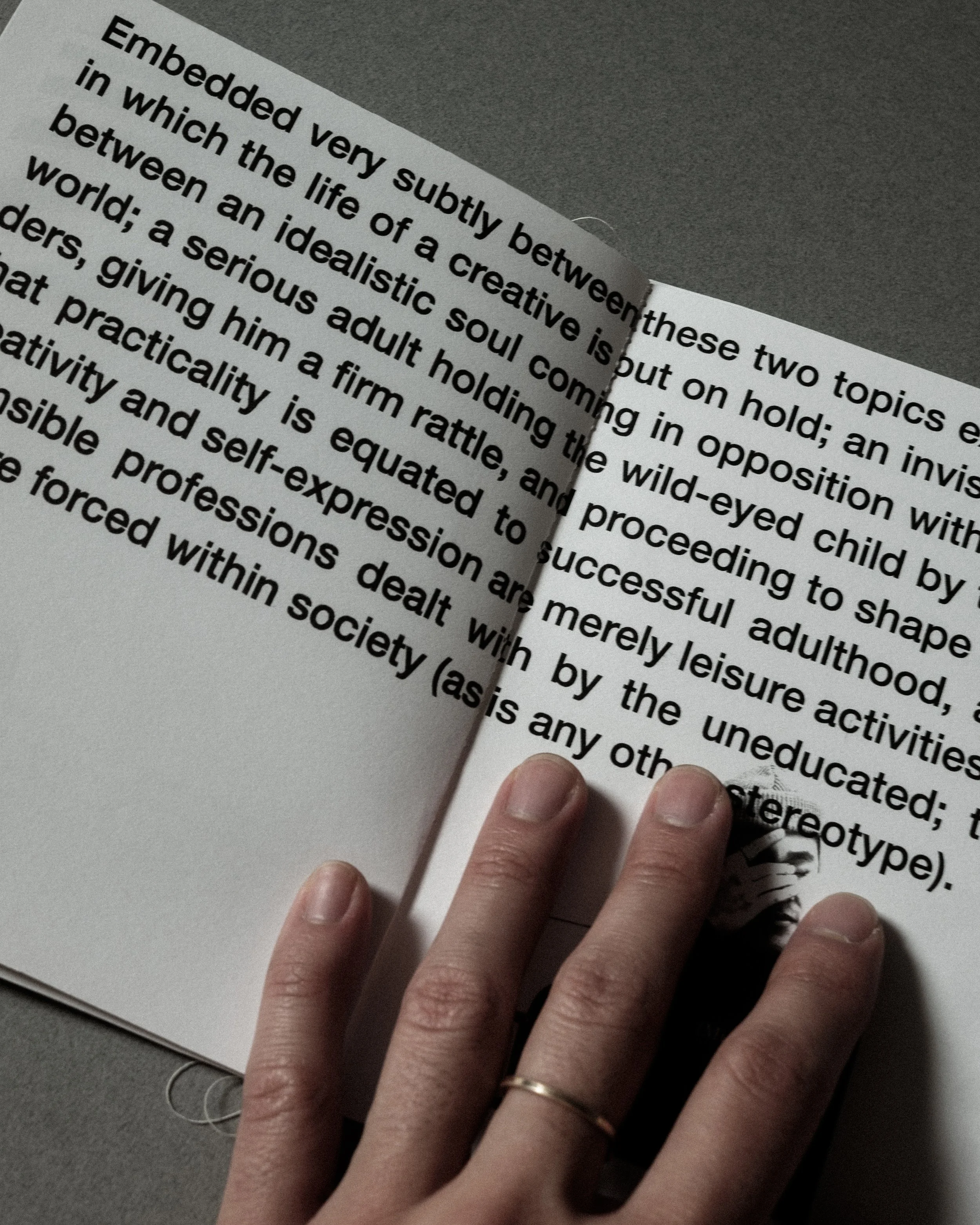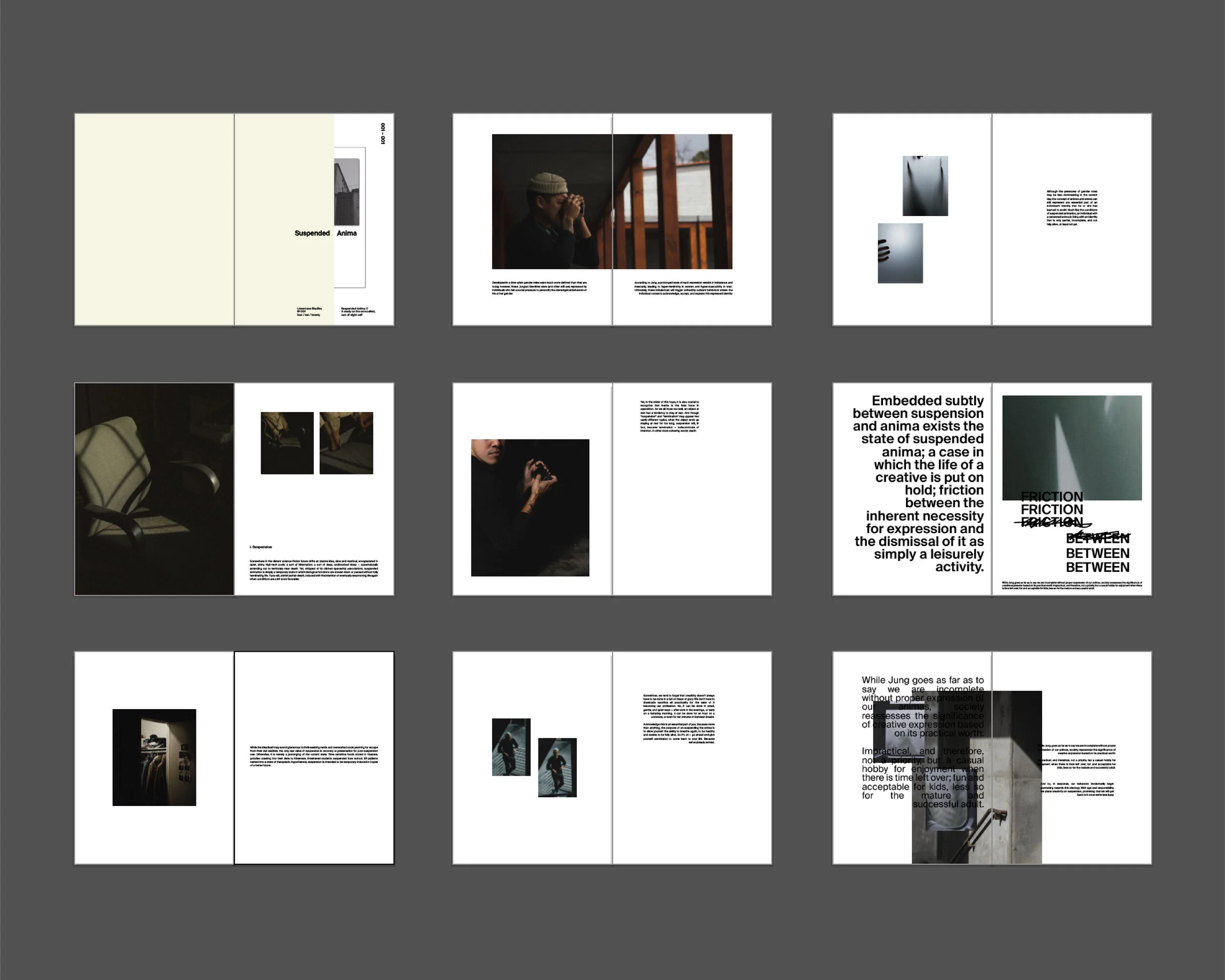Embedded subtly between suspension and anima exists the state of suspended anima; a case in which the life of a creative is put on hold; friction between the inherent necessity for expression and the dismissal of it as simply a leisurely activity.